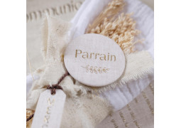 Paquet de 2 badges parrain/marraine communion effet lin, parfaits pour identifier et célébrer les proches lors de la cérémonie.