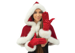 Complétez votre look festif avec ces gants de Noël rouge luxe, parfaits avec notre capeline assortie.