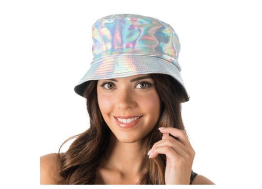 Bob irisé argent, parfait pour compléter un look rétro, un costume ou une tenue de festival. Léger et confortable, il protège du soleil tout en apportant style et originalité. Taille unique.