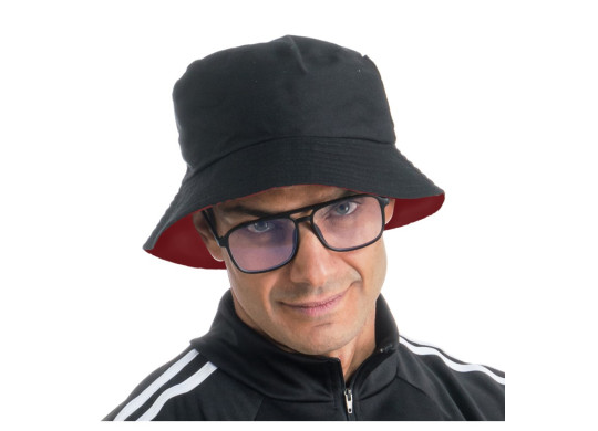 Bob réversible noir et rouge pour adulte, accompagné de lunettes intégrées. Parfait pour compléter un look rétro, un costume ou une tenue de festival. Léger, confortable et original, il protège du soleil tout en apportant style et fun. Taille unique.