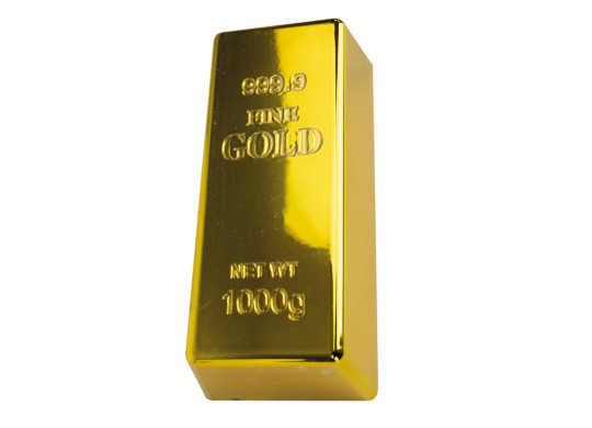 Lingot en plastique doré, dimensions 8 x 16 cm. Idéal comme décoration pour fêtes à thème, déguisements de pirate ou activités ludiques et créatives.