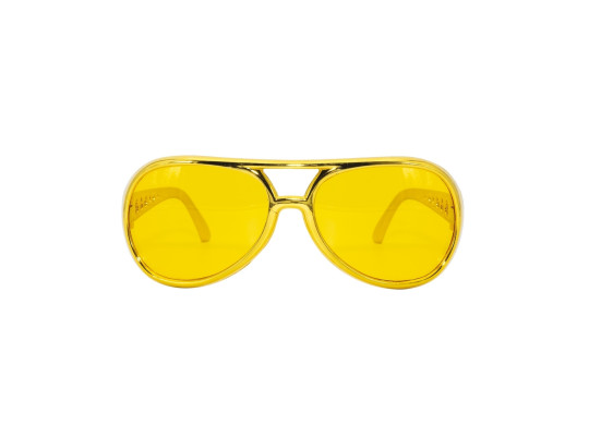 Lunettes dorées style Elvis, idéales pour compléter un déguisement rock ou rétro.