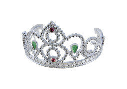 Diadème rigide couleur argent avec pierres décoratives, idéal pour compléter un déguisement élégant ou princier.