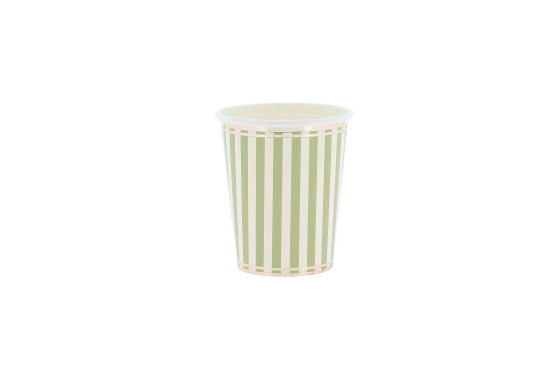 > Voir la description complèteCes 8 gobelets décorés de rayures vertes et blanches, soulignées d’un délicat liseré doré, apportent charme et sophistication à vos tables. Idéals pour un mariage, un anniversaire, un baptême ou tout événement familial, ils permettent de servir vos boissons avec style tout en sublimant votre décoration.