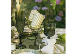 Lot de 8 gobelets Jardin à la Française, rayures vert et blanc avec liseré doré, parfaits pour une table élégante et raffinée.