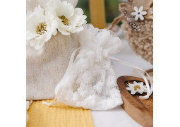 > Voir la description complèteCes pochons à dragées modèle Daisy sont délicatement brodés de petites fleurs blanches, apportant une touche douce et raffinée à votre présentation. Idéals pour contenir dragées, bonbons ou petits souvenirs invités, ils conviennent parfaitement pour un baptême, un mariage ou une fête à thème floral. Élégants et soignés, ils subliment vos cadeaux invités avec finesse.