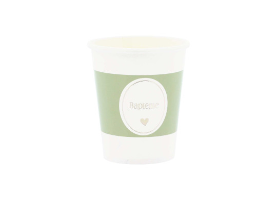 Lot de 8 gobelets baptême verts, parfaits pour compléter votre décoration de table lors d’une cérémonie.