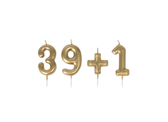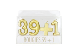 Set de bougies “39 + 1” dorée, hauteur 7 cm. Parfait pour décorer votre gâteau et ajouter une touche humoristique, il vous aidera sans aucun doute à passer joliment le cap de la trentaine !