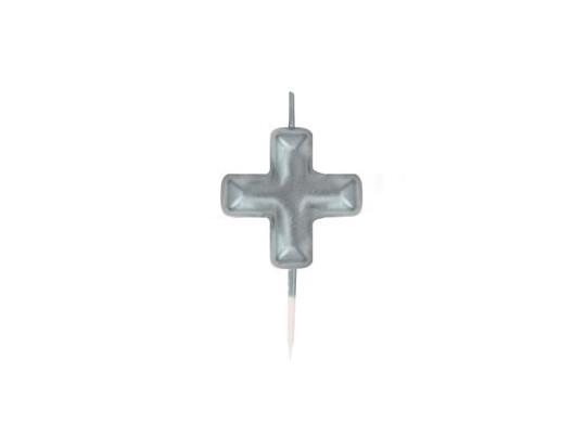 Bougie signe “+” de couleur argent, 5cm, parfaite pour compléter un âge ou un message personnalisé sur votre gâteau d’anniversaire.