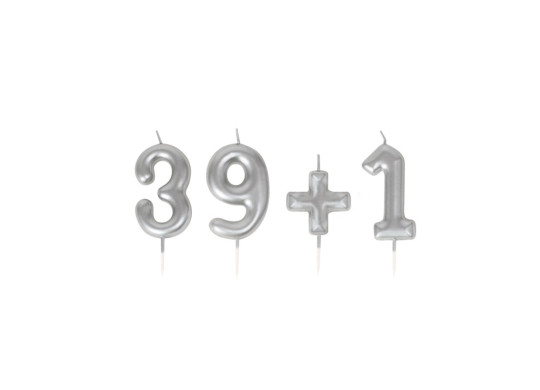 Set de bougies “39 + 1” argenté, hauteur 7 cm. Parfait pour décorer votre gâteau et ajouter une touche humoristique, il vous aidera sans aucun doute à passer joliment le cap de la trentaine !