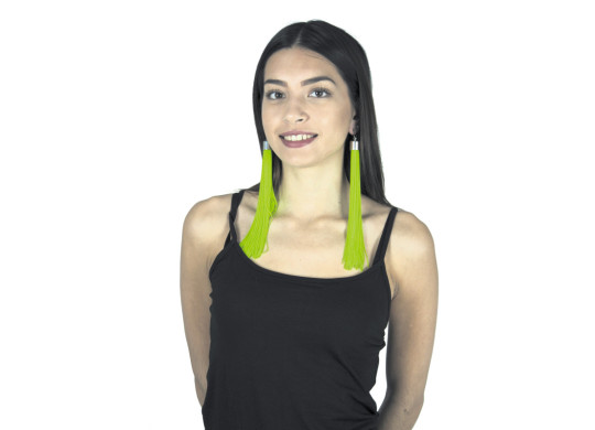 Boucles d’oreilles avec franges néon vert, légères et colorées. Parfaites pour compléter un look années 80, un déguisement ou apporter une touche fun et flashy à une tenue de soirée, festival ou carnaval.