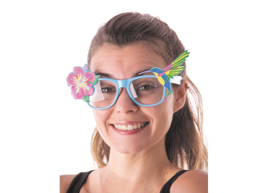 > Voir la description complèteLunettes hibiscus tropicales. Accessoire léger parfait pour déguisements, fêtes estivales et soirées à thème.