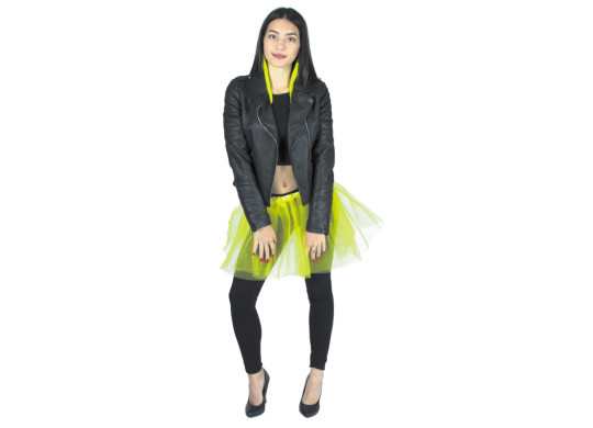 Tutu en tulle jaune, longueur 35 cm. Léger et confortable, parfait pour compléter un déguisement, un look festif ou une tenue de danse et carnaval. Taille unique.