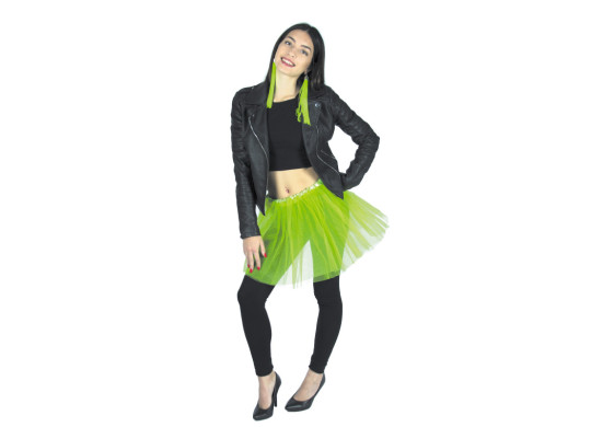 Tutu en tulle vert, longueur 35 cm. Léger et confortable, parfait pour compléter un déguisement, un look festif ou une tenue de danse et carnaval. Taille unique.