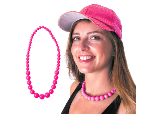 Collier composé de perles néon rose, léger et confortable. Parfait pour compléter un déguisement rétro, un look années 80 ou ajouter une touche flashy à une tenue de fête, carnaval ou festival.
