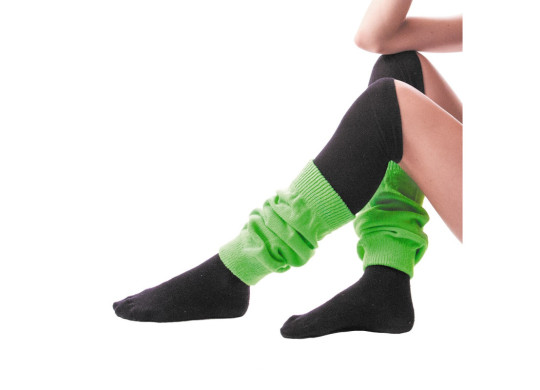 Lot de 2 guêtres tricot vert fluo, parfaites pour compléter un déguisement ou apporter une touche colorée à vos fêtes et animations.