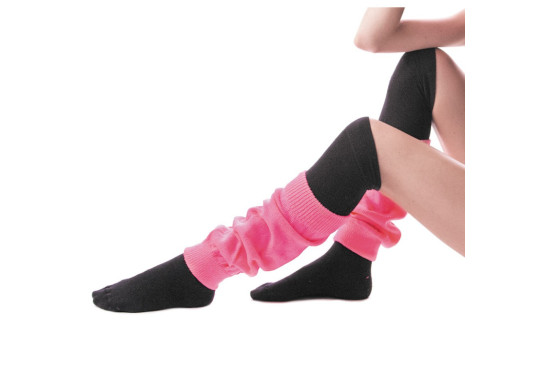 Lot de 2 guêtres tricot rose fluo, parfaites pour compléter un déguisement ou apporter une touche colorée à vos fêtes et animations.
