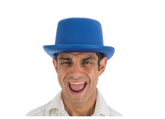 Chapeau haut de forme bleu en satin, hauteur 12 cm. Parfait pour compléter un costume élégant ou une tenue de cérémonie, soirée déguisée ou événement à thème. Léger et confortable à porter.