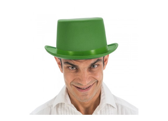 Chapeau haut de forme vert en satin, hauteur 12 cm. Parfait pour compléter un costume élégant ou une tenue de cérémonie, soirée déguisée ou événement à thème. Léger et confortable à porter.