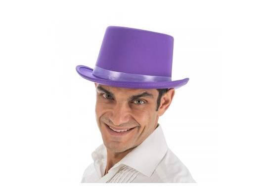 Chapeau haut de forme violet en satin, hauteur 12 cm. Parfait pour compléter un costume élégant ou une tenue de cérémonie, soirée déguisée ou événement à thème. Léger et confortable à porter.