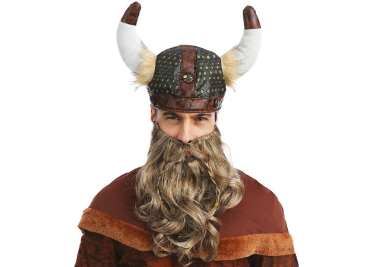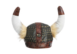 Casque viking effet cuir, idéal pour compléter un déguisement de guerrier nordique ou un look médiéval.