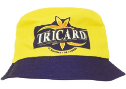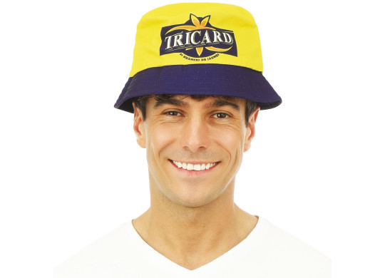 Bob apéro jaune avec inscription "Tricard", idéal pour ajouter une touche humoristique à vos fêtes.