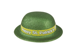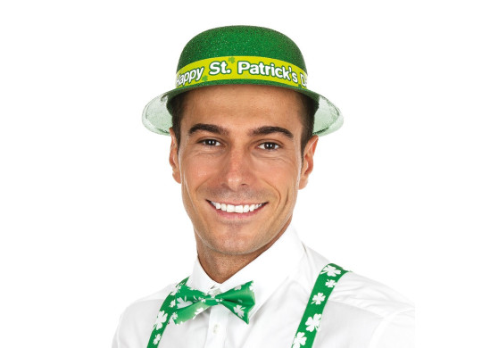 Chapeau melon pailleté vert, idéal pour compléter un déguisement ou une tenue festive.