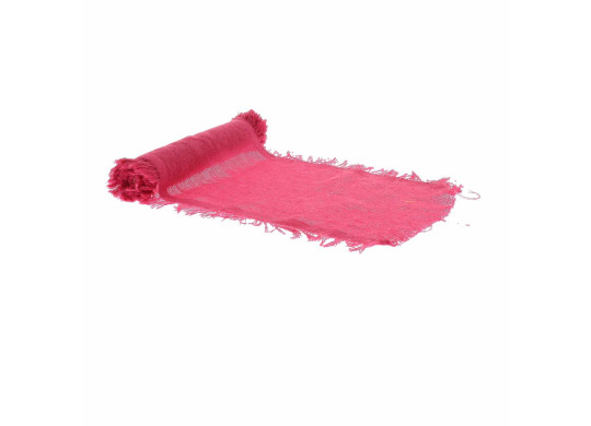 Chemin de table en tissu effiloché framboise de 30 cm x 3 m. Idéal pour sublimer une table de mariage coloré, un anniversaire ou une fête estivale.