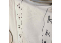 > Voir la description complèteCe chemin de table en tissu blanc décoré de petits nœuds noirs apporte une touche chic et raffinée à votre décoration. Parfait pour un mariage, un anniversaire ou une réception élégante, il s’étend facilement sur toute la longueur de la table pour structurer et embellir votre décoration. Coordonné aux assiettes, serviettes et gobelets de la même collection, il crée une table harmonieuse et tendance.