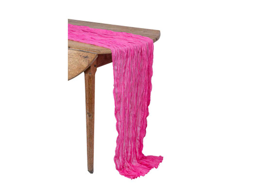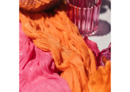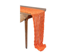 Chemin de table en gaze de coton froissé, existe en 2 couleurs : orange et framboise , dimensions 90 cm × 3 m, parfait pour apporter texture et couleur à vos tables.