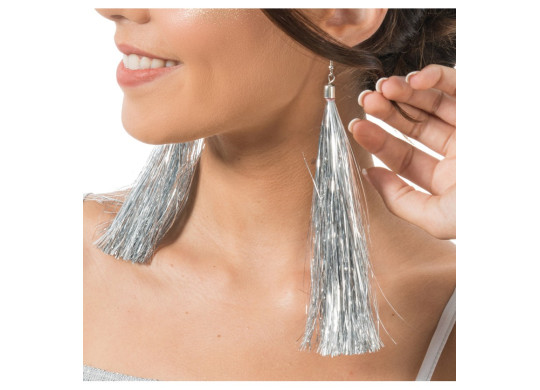 > Voir la description complèteBoucles d’oreilles scintillantes argent. Accessoire léger et brillant, idéal pour les fêtes, soirées déguisées.