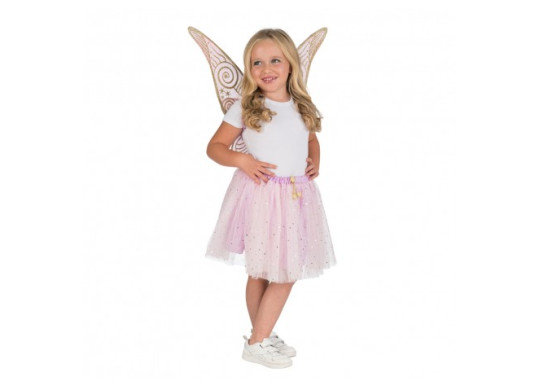 Set fée papillon pour enfant comprenant un tutu rose et des ailes assorties. Léger et confortable, parfait pour compléter un déguisement de fée lors des fêtes, carnavals ou jeux imaginaires. Taille unique.