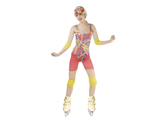 Costume adulte femme Roller Girl des années 80, parfait pour un look rétro fun et coloré ! Confortable et pleine de pep’s, elle apporte instantanément une touche vintage et dynamique à votre déguisement.