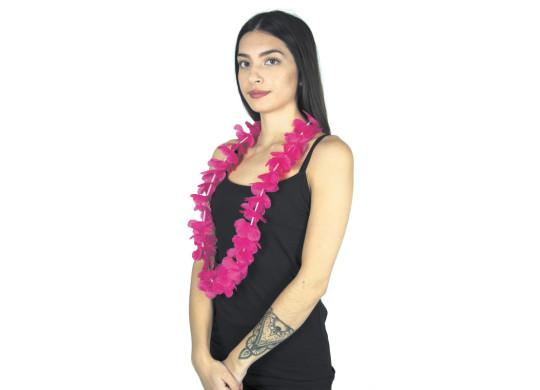 Collier hawaïen composé de 36 paires de fleurs rose, idéal pour apporter une touche tropicale à un déguisement ou à une soirée à thème. Léger et confortable, il se porte facilement lors des fêtes estivales, anniversaires, soirées plages ou événements hawaïens.