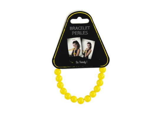 > Voir la description complèteBracelet perles néon jaune. Accessoire léger et coloré parfait pour soirées, déguisements et festivals.