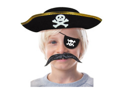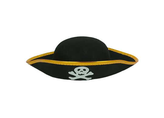 > Voir la description complèteChapeau pirate enfant en feutre noir. Accessoire léger et pratique pour compléter un déguisement de pirate.