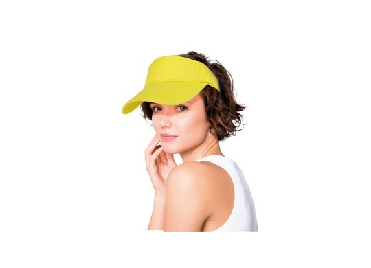 > Voir la description complèteVisière tissu jaune fluo. Accessoire léger et coloré idéal pour déguisements, fêtes et festivals.