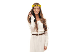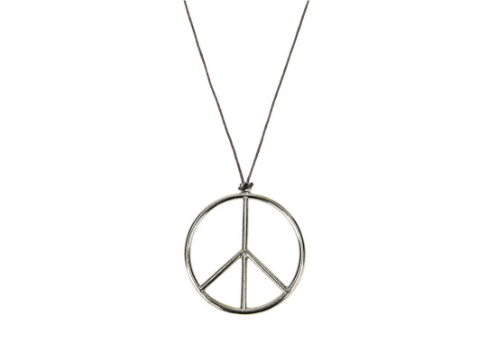 Collier hippie en métal argenté, diamètre 7 cm. Léger et confortable, parfait pour compléter un déguisement hippie ou ajouter une touche rétro à une tenue de fête, carnaval ou festival.