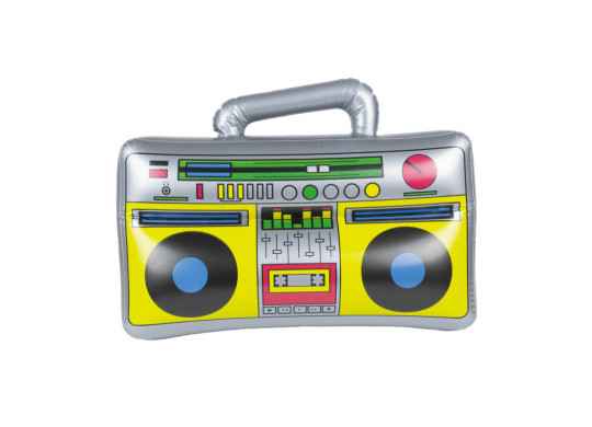 > Voir la description complèteRadio cassette 90s gonflable. Accessoire léger et rétro pour déguisements, fêtes et soirées années 90.