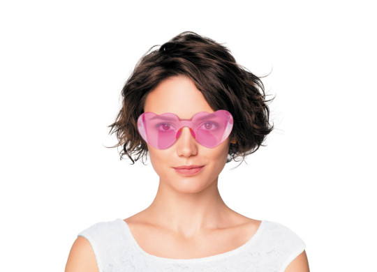Lunettes de festival en forme de cœur rose, parfaites pour compléter une tenue festive et originale.