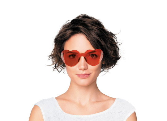 Lunettes de festival en forme de cœur rouge, parfaites pour compléter une tenue festive et originale.