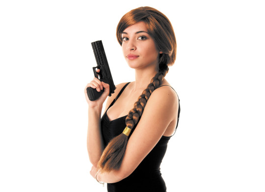 Perruque brune style aventurière, idéale pour compléter un déguisement ou une tenue de soirée à thème.