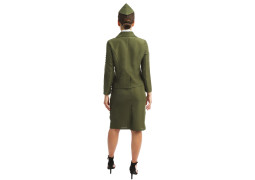Costume militaire D-Day pour adulte femme comprenant jupe, veste, dickey, cravate et chapeau.