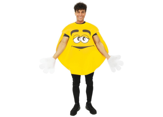Costume bonbon rond jaune pour adulte, taille unique, idéal seul ou en costume de groupe avec d’autres couleurs.