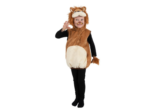 Costume de lion pour enfant, modèle mixte avec combinaison à capuche, idéal pour les fêtes costumées.