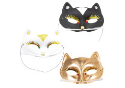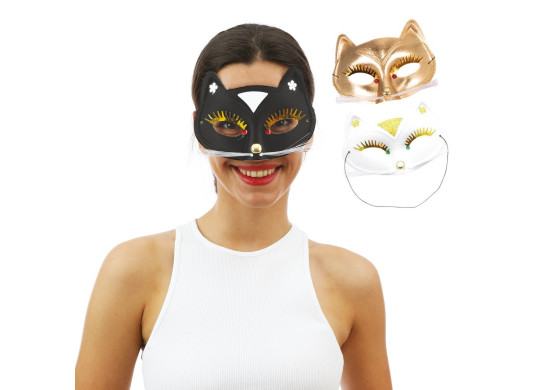 Masque en tissu imitation fourrure de chat avec moustaches, idéal pour compléter un déguisement félin.