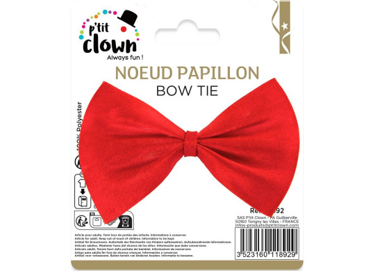> Voir la description complèteCe nœud papillon rouge en tissu apporte une touche soignée à votre tenue. Facile à enfiler et confortable, il convient aux soirées à thème, carnavals, fêtes costumées ou événements festifs. Un accessoire simple pour finaliser un look élégant ou classique.