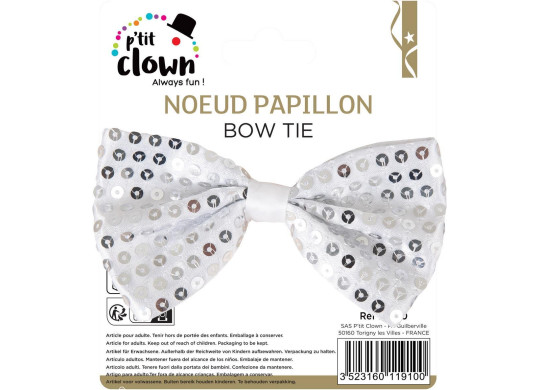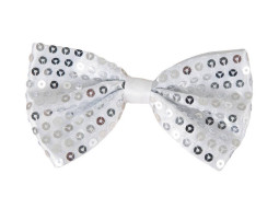 Nœud papillon à sequins argent, idéal pour compléter un déguisement festif ou apporter une touche brillante à votre tenue.