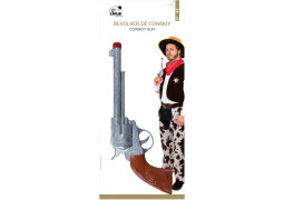 Ce set de cow-boy se compose d’un revolver factice de 28 cm, d’une ceinture et d’un étui permettant de ranger le revolver.