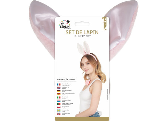 Set lapin rose comprenant un serre-tête, un nœud papillon et une queue. Idéal pour compléter un déguisement ou une tenue festive.